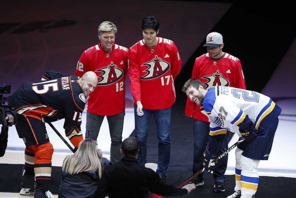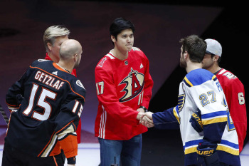 エンゼルスの大谷がNHLのセレモニーに登場 ダックス対ブルース戦でパック・ドロップ