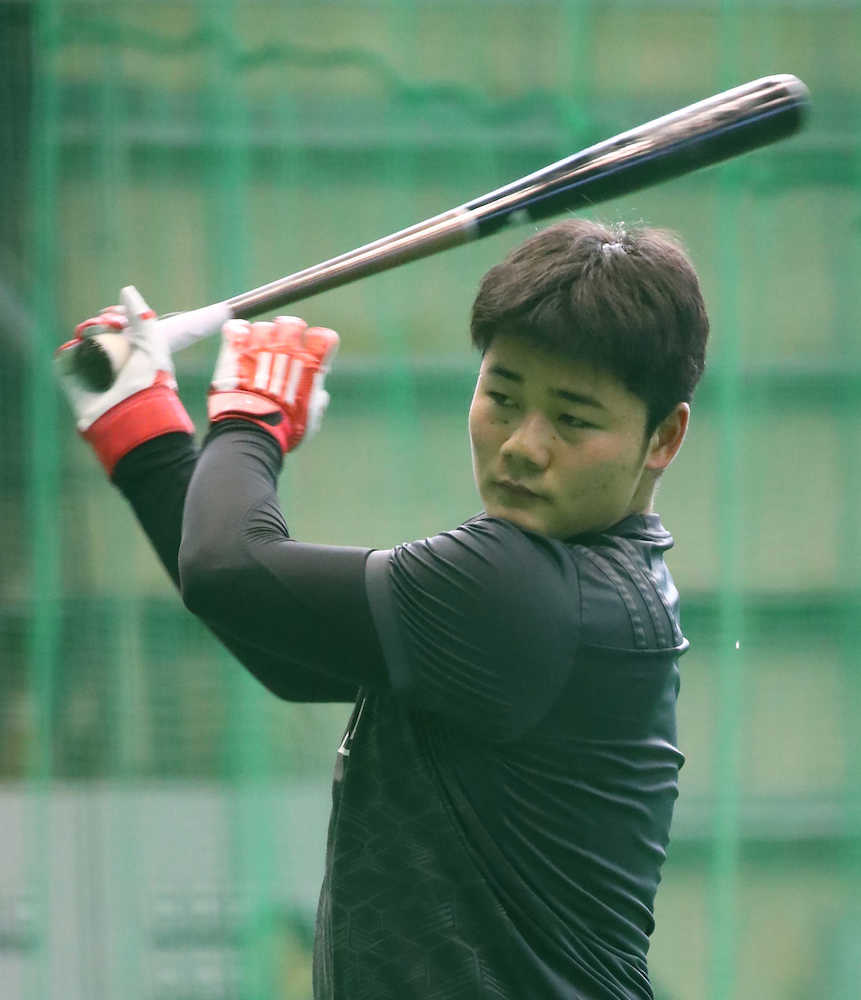 2月の米アリゾナ春季キャンプまでテーピングをしたバットを使用する予定。「探りながらやっている」と慎重に調整を続ける。