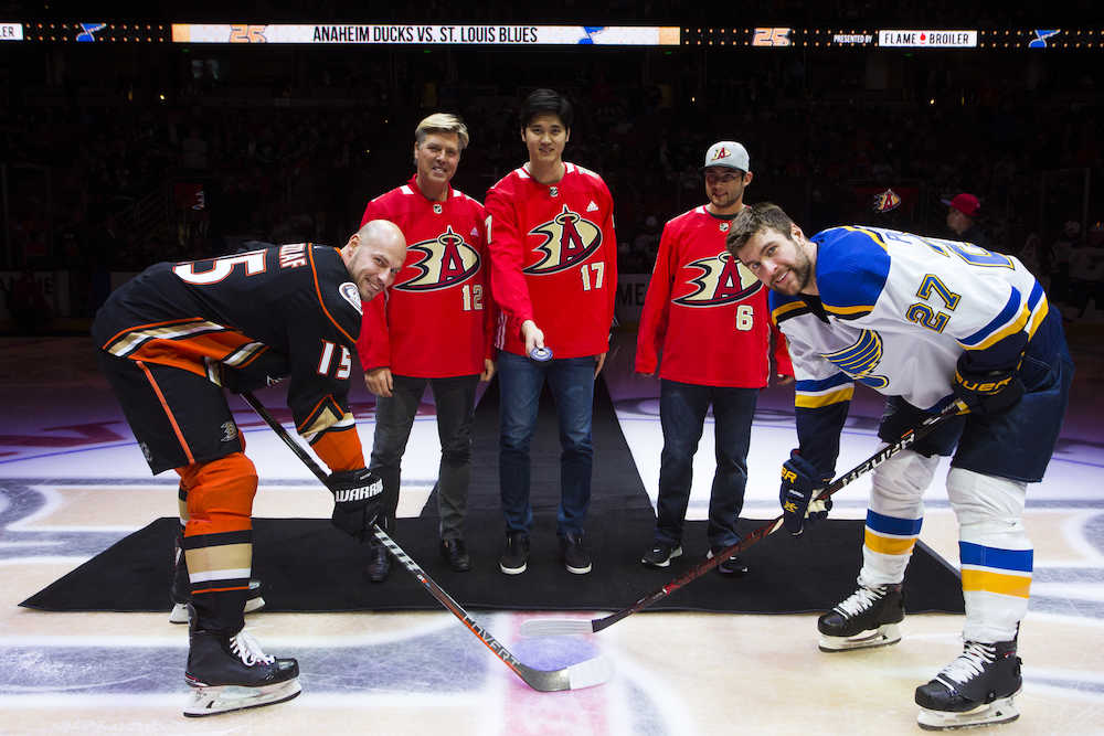 大谷、NHLで“始球式” 同じアナハイム本拠ダックス戦で