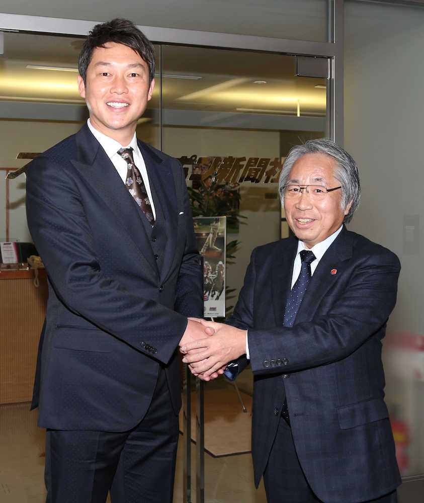 昨季限りで現役引退し、本紙評論家に就任した前広島の新井貴浩氏(41)が25日、東京都江東区のスポーツニッポン新聞東京本社を訪問した。河野俊史代表取締役社長とガッチリ握手し、「回りくどくなく、分かりやすく選手をリスペクトした評論を心掛けたい」と指針を示した。