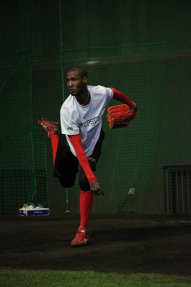 広島・アドゥワはキャンプ地の宮崎県日南市で先乗り自主トレに参加し、102球を熱投した。今年初のブルペン入りだった前日25日が30球。連投で、初めて捕手を座らせたにしては異例の球数だ。「(キャンプインまで)時間がないし、仕上げの段階に入らないといけない。一回、腕を張らせようと思って投げた」。