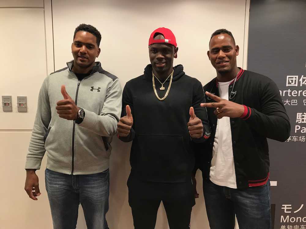 羽田空港に来日した(左から)巨人・アダメス、マルティネス、メルセデス