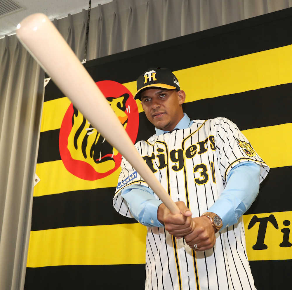 阪神の新助っ人、ジェフリー・マルテ内野手(27=前エンゼルス)が29日、兵庫県西宮市内の球団事務所で入団会見に臨んだ。メジャー通算30発で、16年には88試合で15本塁打を放ったパワーが最大の魅力のドミニカン。初めてタテジマのユニホームに袖を通し、異国での大暴れを誓った。