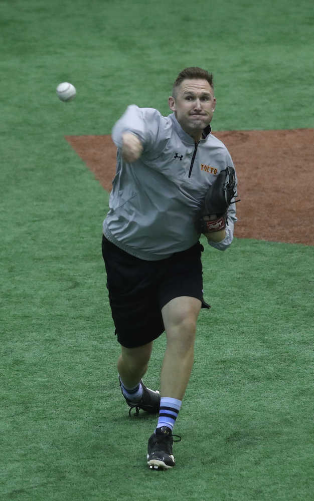 助っ人陣がジャイアンツ球場で初練習 クック、元同僚の上原との再会を喜ぶ