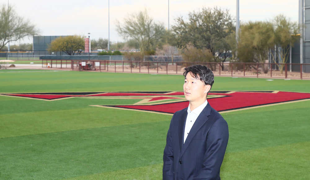 2年目で初めて1軍キャンプメンバー入りした東大出身左腕・宮台が、キャンプ地となるダイヤモンドバックスの施設を見学した感想を問われ「I’m very excited!(とても興奮しています)」と声を弾ませた。