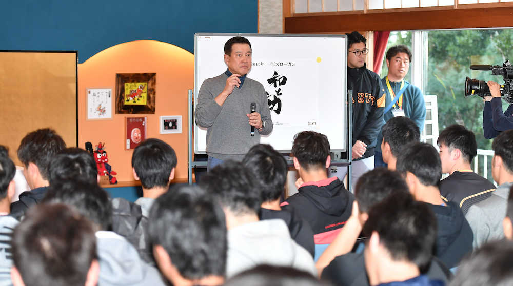 ナインと共に宮崎神宮を参拝後、全体ミーティングであいさつ。「2019年がいよいよスタートします。私はジャイアンツに30年おりました。2019年度が私にとっては31年目のジャイアンツになります。非常に新鮮に、1年目、ルーキーイヤーという気持ちでやっていこうと思っています。選手たちは今の段階では1軍、2軍と分けました。しかし、私の中では、チームは一つです。自分の中では実力至上主義、勝利至上主義。目標は日本一である。その日本一の中に必ずこの全員がメンバーに入る。1試合でも、或いは数多く貢献するという気持ちを持っていただきたい」と話した。