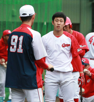 広島ドラ1小園、柵越え5発!緒方監督も高評価「バット振れている」