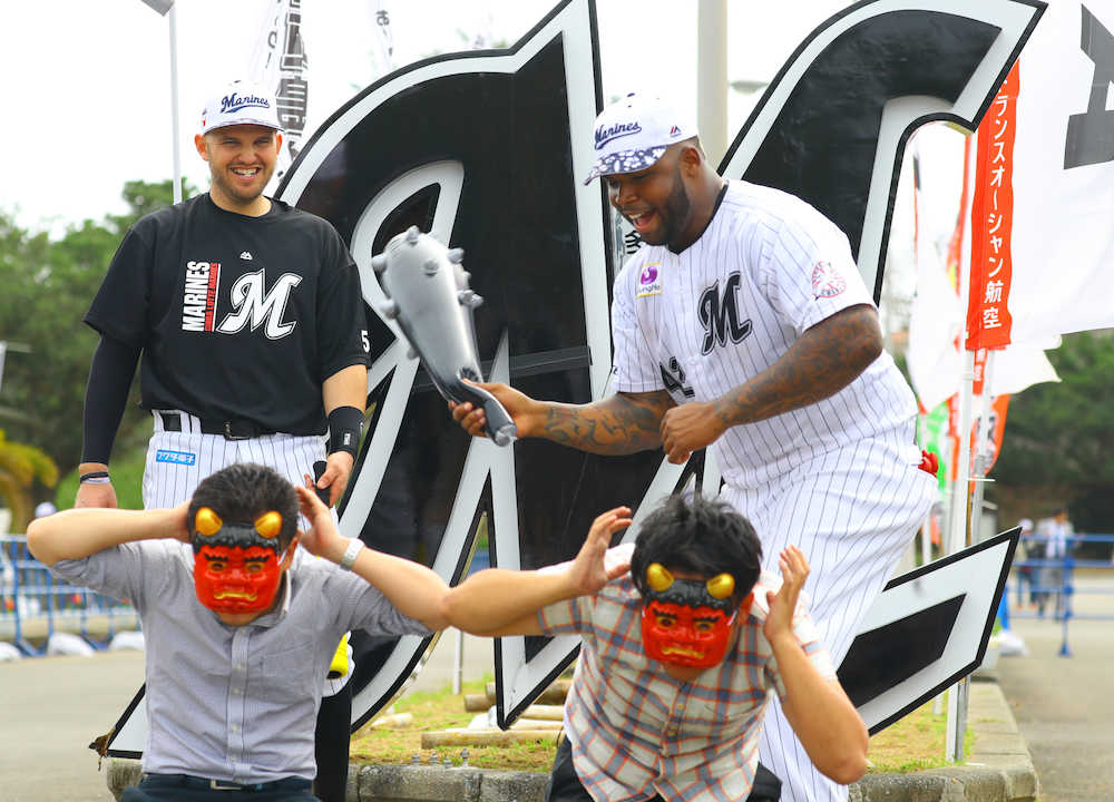 ロッテは新外国人の2人が節分を初体験した。バルガスは自ら赤鬼の面をかぶり、金棒に見立てたバットを振り回し「もう一度、やりたい」と興奮。寿司好きのレアードも恵方巻きは初体験で「ブリトーみたいな寿司だ!」と驚いていた。