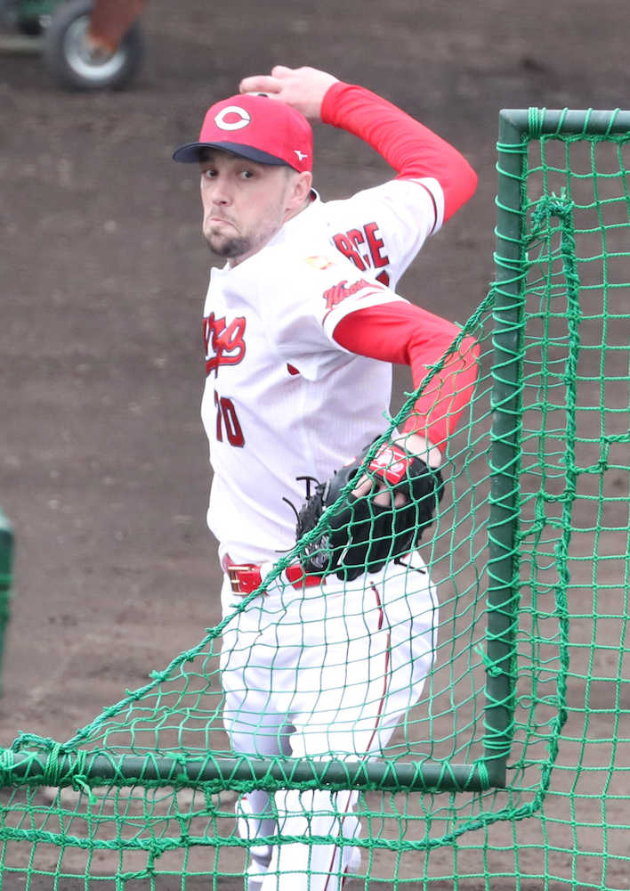 「良い感じできている。肩も85%くらいの仕上がり。シーズンに100%持っていけるようにしたい」。調整は順調そのもの。助っ人右腕が徐々にギアを上げてきた。(湯澤 涼)
