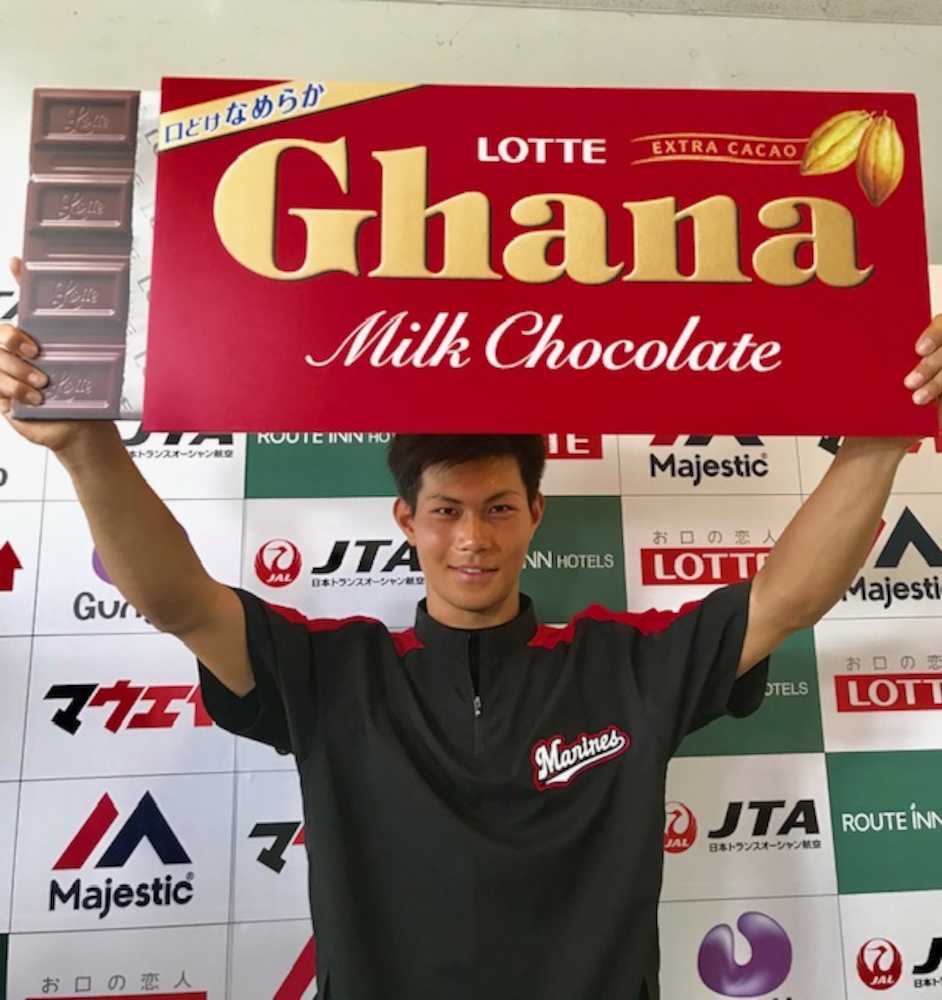 ロッテは「ガーナミルクチョコレート」とタイアップしたバレンタイン限定企画「あなたがチョコを渡したい選手」投票の6日、午前10時現在の途中経過を発表。1次中間発表では4位発進したドラフト1位・藤原恭大外野手(18=大阪桐蔭)が、一気に2位に浮上した。投票は今月10日まで。