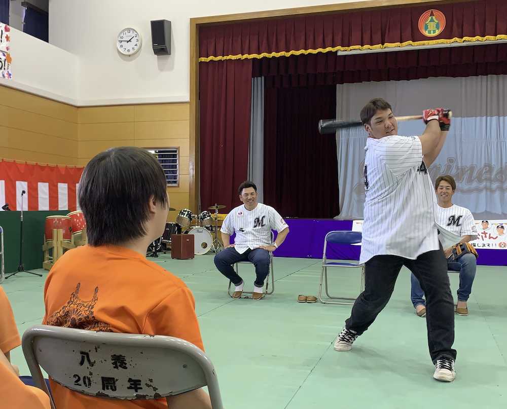 ロッテ・井口監督らが特別支援学校訪問 井上「全力」フルスイングで沸かせる