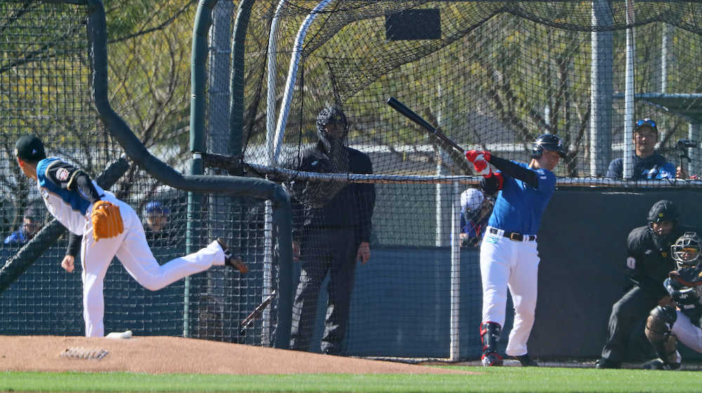 米アリゾナ州で行われている1軍春季キャンプに参加している日本ハム・清宮幸太郎内野手(19)が6日(日本時間7日)、早実の先輩である斎藤佑樹投手(30)とフリー打撃で対戦。お互いに調整の場で投球前に球種を宣言する形の対戦だったが、高めの直球にタイミングを合わせ、逆方向の左越えに技ありの一発を放った。