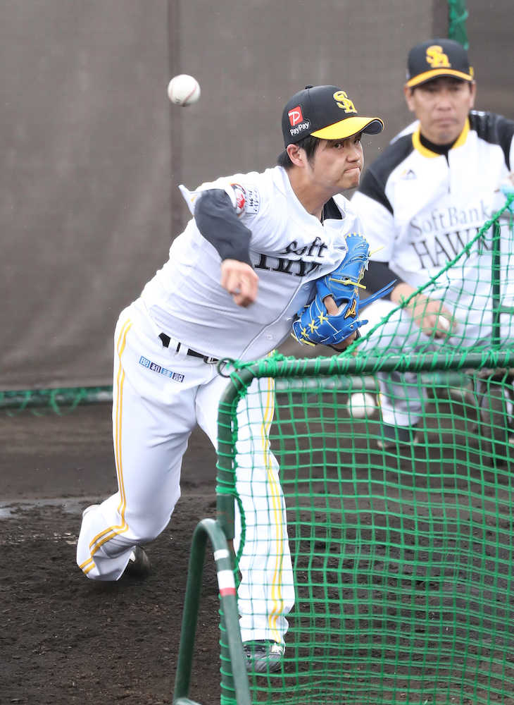上林、柳田の2人に全て直球で計37球を投じ、ボール球は10球。安打性の当たりは上林の2本、柳田の1本だけだった。工藤監督は今キャンプで主力のA組に即戦力と見込む新人4投手を抜てき。その筆頭格の期待にたがわぬアピールに「速いですね。折れましたしね。1面、確定ですね」と頬を緩め「左(打者へ)のインサイドは、かなり力がある」とうなった。キャンプインからすでにブルペンで2度組んでいる甲斐は「打者が立っても同じように投げられていた」とうなずいた。