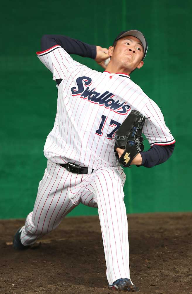 体調不良を訴えて別メニュー調整が続いていたヤクルトのドラフト1位・清水昇投手(国学院大)が8日、ブルペンで68球の投球練習を行った。