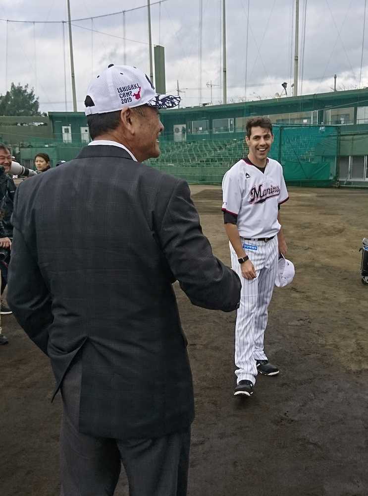 ロッテのブランドン・マン投手(34)は8日、横浜DeNA時代の監督である中畑清氏(65)=スポニチ本紙評論家=と再会を果たした。石垣島キャンプの視察に来た同氏を見つけた左腕は「アリガトウゴザイマ! ゼッコウチョウー! ゼッコウチョー!」とお株を奪った日本語であいさつ。