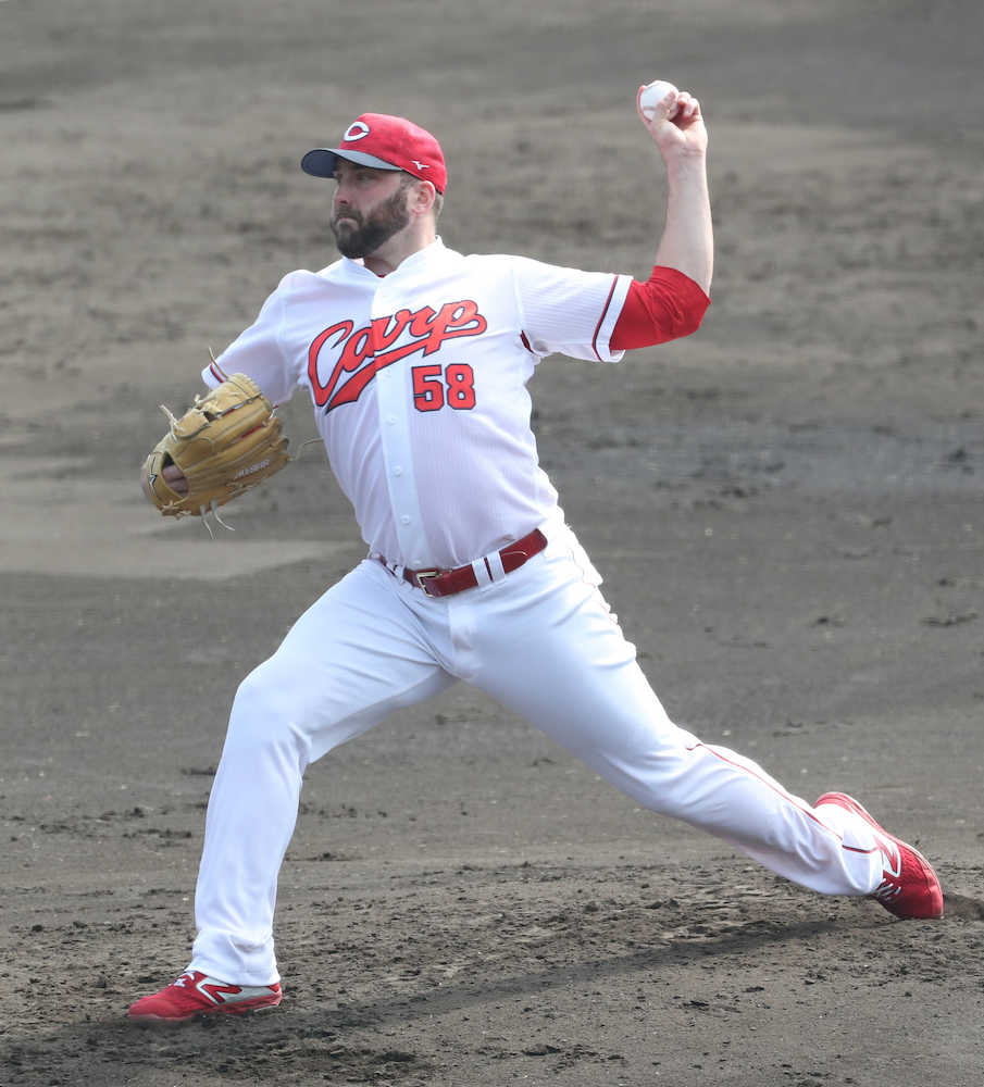 広島の新外国人、カイル・レグナルト投手(30=メッツ)は第3クール2日目の10日、今キャンプ初のシート打撃に登板し、打者7人に3与四球ながら、安打性は0本に抑えた。決め球のパワーカーブで長野から空振り三振を奪うなど、他球団007も警戒。過去5年で最多となった1万7000人の観衆の前で、「ハンマーカーブ」との愛称がつく噂の魔球が本物であることを証明した。