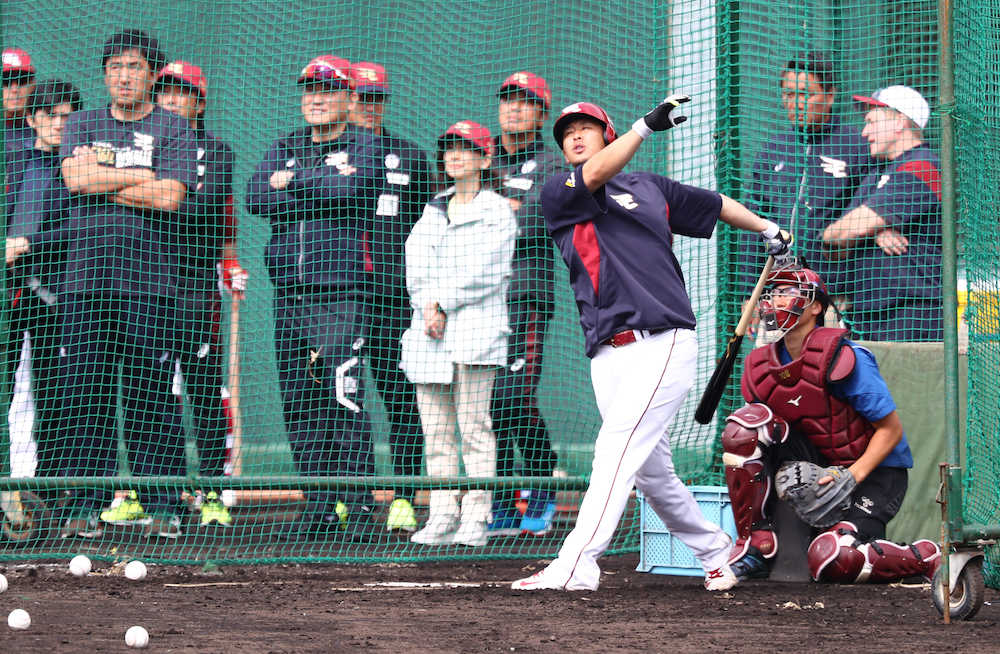 楽天の三木谷浩史オーナーが沖縄・金武町での2次キャンプ初日となった11日、全体練習を視察した。FAで獲得した浅村やドラフト1位・辰己(立命大)、新外国人のブラッシュの打撃練習に熱視線を送った。