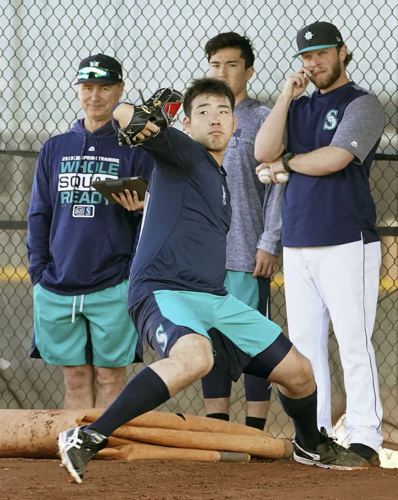 マリナーズの菊池が10日(日本時間11日)、キャンプ地で2日連続のブルペン投球を行った。46球を投げ「2日連続というのは日本でもよくやっていた。新たな課題が見つかりながら毎日できている。その繰り返し」と話した。この日はスコット・サービス監督が初めて投球を視察。「緊張感もありながらやっている」と口にしつつ「試合で結果を出すことが第一。逆算しながらプラン通りに準備することが一番大事」と足元を見据えた。