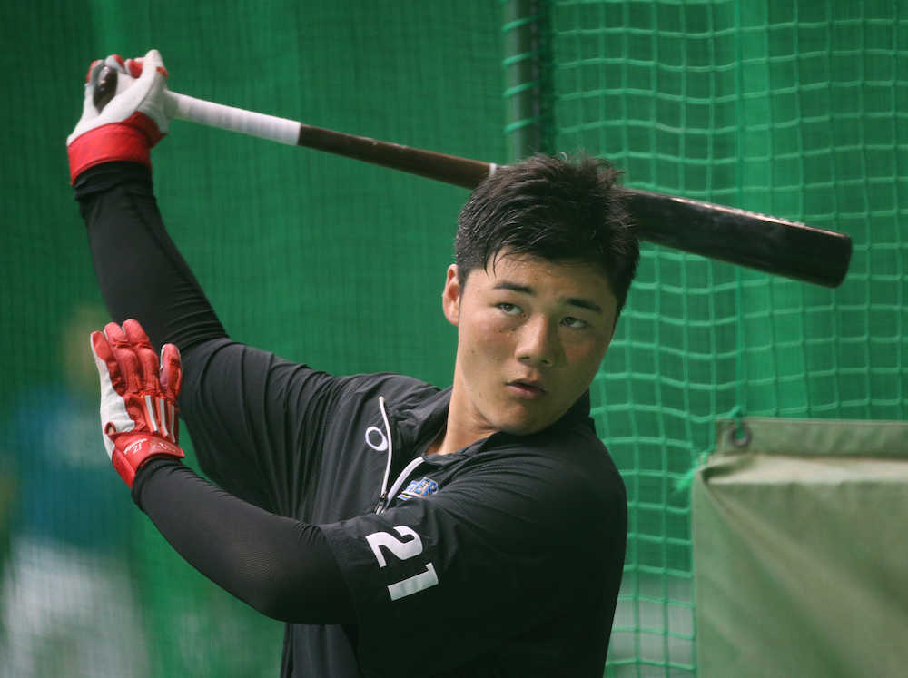 打撃練習で汗を流す清宮(撮影・西海健太郎)