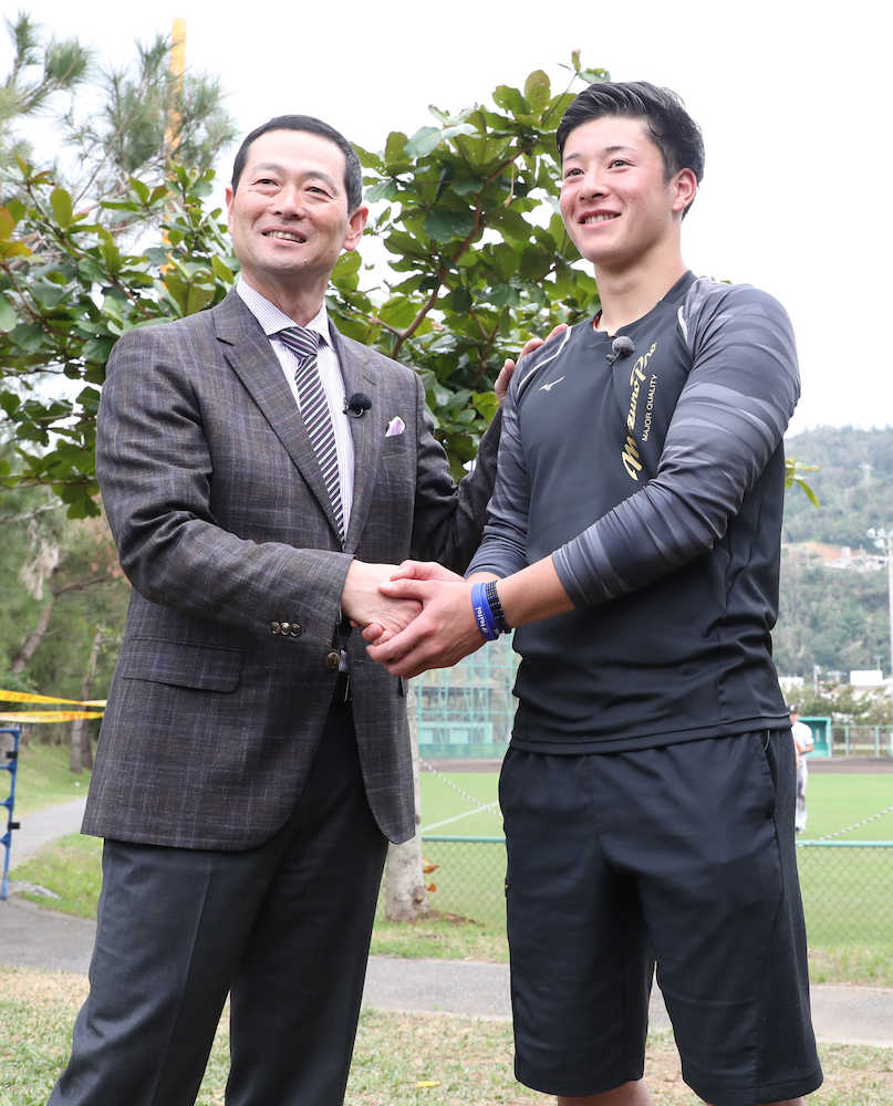 レジェンドと交わす握手に、緊張を隠せなかった。日本ハムのドラフト1位・吉田輝(金足農)が、沖縄・国頭村の2軍キャンプでテレビ番組の収録で訪れた桑田真澄氏(野球評論家)と対面。「直球を磨かないと、プロでは生きていけない」と桑田氏の言葉を真剣な表情で聞き入った。