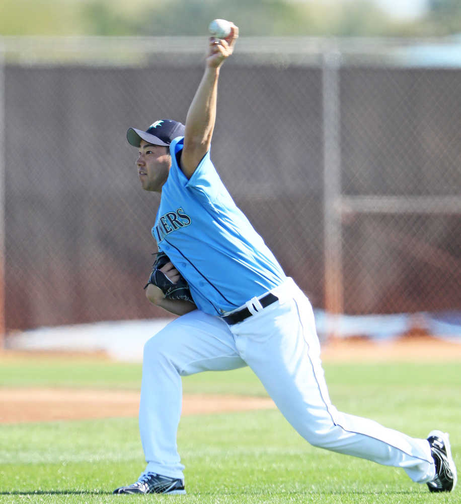 この日は守備練習後に平地で26球を投げ、19日のライブBP登板に備えた。同僚の先発右腕リークからチェンジアップのリリースポイントについて助言を受け「気付いたことを教えてくれた」と感謝。メジャー球への対応で握りを微調整している宝刀スライダーについても「こっちの選手に聞くのは凄く大事。聞いて回っている」と、貪欲だった。
