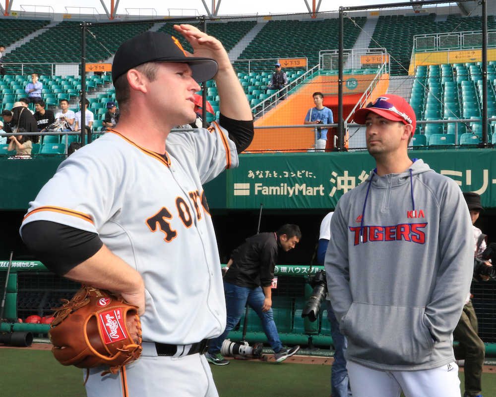 この日練習試合を行った韓国・KIAのジョー・ウィーランド投手(29、元DeNA)とは親交があり、13日にも食事。「日本の生活のこととかを教わった」と明かしていた。