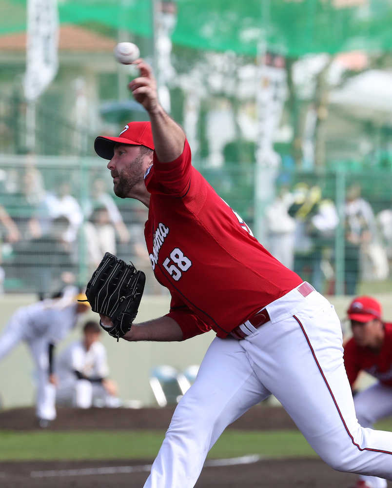 広島の新外国人、カイル・レグナルト投手(30=メッツ)は、5回から3番手として登板し、1イニングを無安打2奪三振で無失点に抑えた。