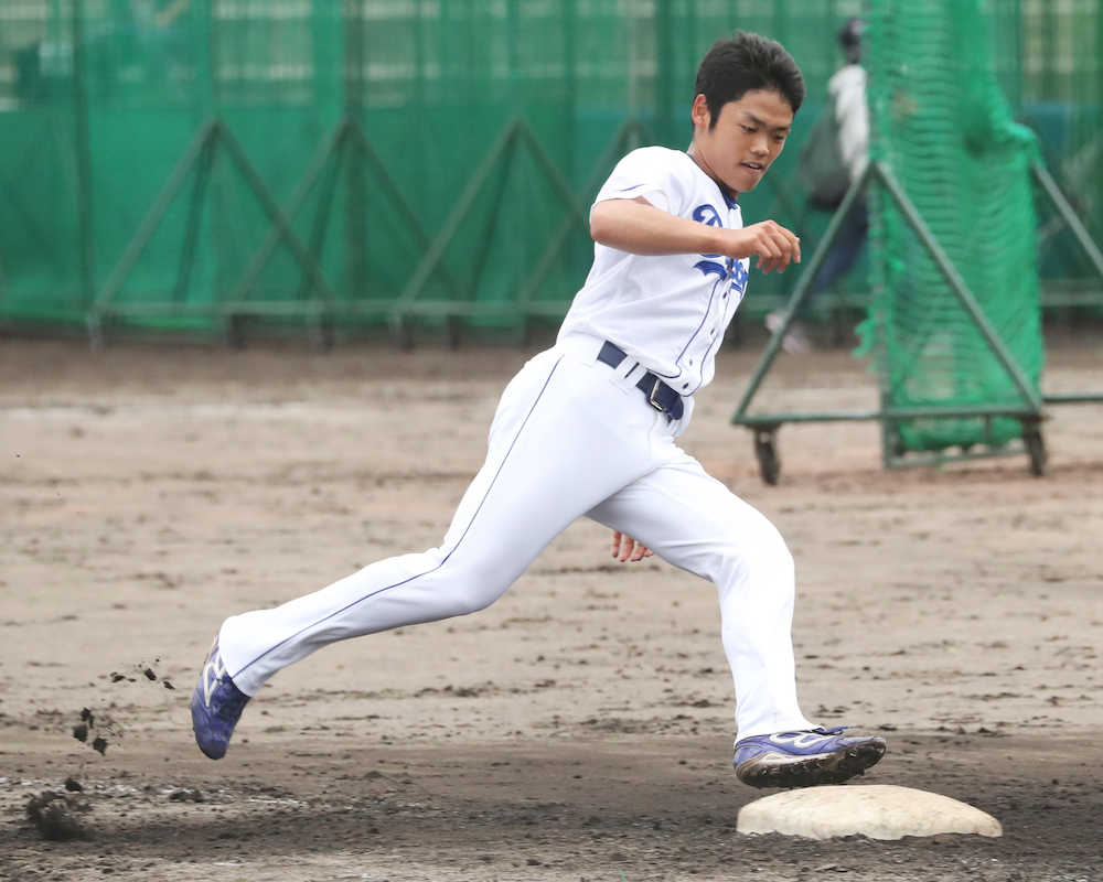 痛めた右足ではなく左足で一塁ベースを踏み「ちょうど1カ月ぐらいですね。軽く走れたし、また一つステップを踏めた」と納得顔。「怖さはないが、だいぶ抑えている。軽めです」と話したが、2軍本隊への完全合流も近づいている。