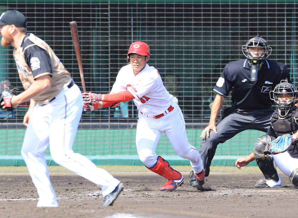 広島ドラ1小園 実戦12打席目で“プロ初安打” 「やっと打ててうれしい」