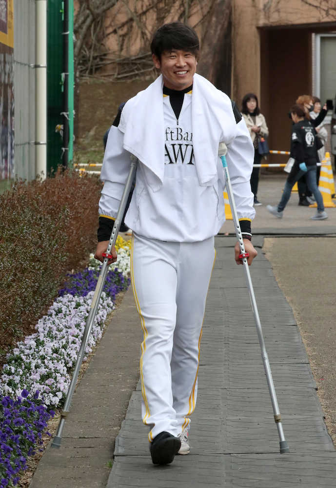 この日は、体幹とウエイトトレーニングで汗を流した。松葉づえはついているものの、患部も腫れもほとんど引いたといい、「内出血はあるけど、痛みはない。驚異の回復力」と回復ぶりをアピールしていた。