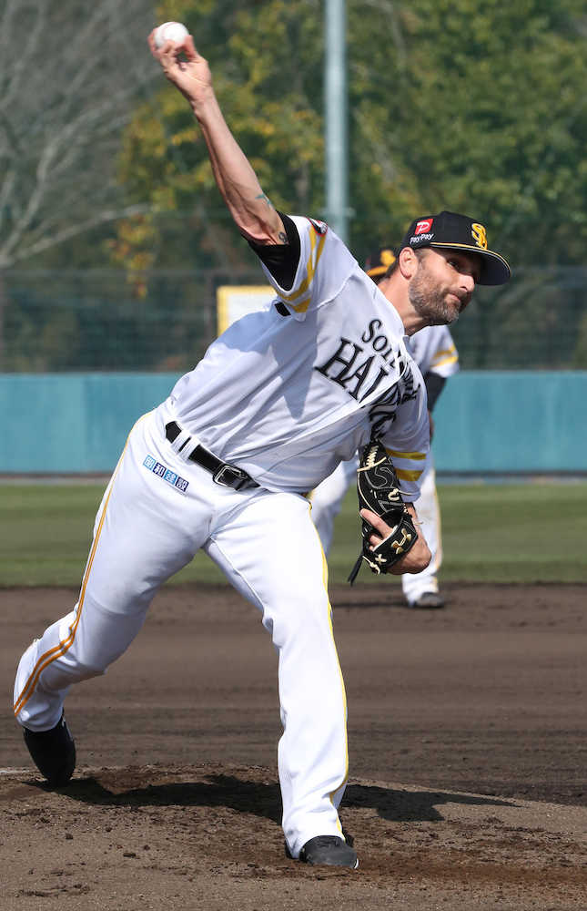 同じシート打撃で嘉弥真は今季初めて打者と対戦。8人に35球を投げ、安打性は3本だった。「感触は良かった。久しぶりの実戦で楽しかった」と充実感を漂わせた。