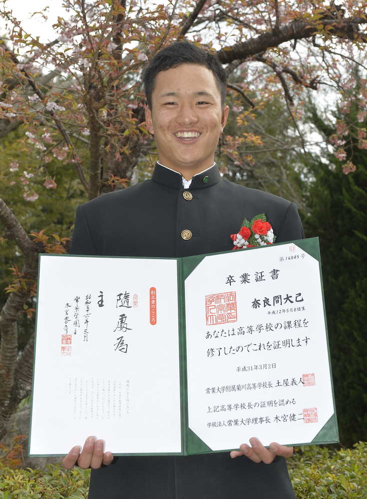 侍ジャパンU―18日本代表、常葉大菊川野球部で主将として昨夏甲子園16強に貢献した奈良間大己遊撃手(3年)が2日、静岡県菊川市内の同校で開かれた卒業式に出席した。