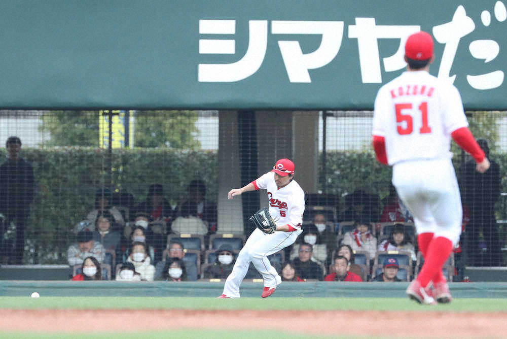 6回、長野が左翼位置に向かうだけでマツダスタジアムが沸いた。今春自身初となる実戦守備。「代わったところに打球が飛ぶ」の格言通り、先頭打者の打球が飛んできた。松本のライナー性の飛球を捕球すると、再び大きな声援が送られた。プロ1年目の2010年以来となる左翼守備。試合終了まで守り、アウトに携わった守備機会はこの一度だけだった。