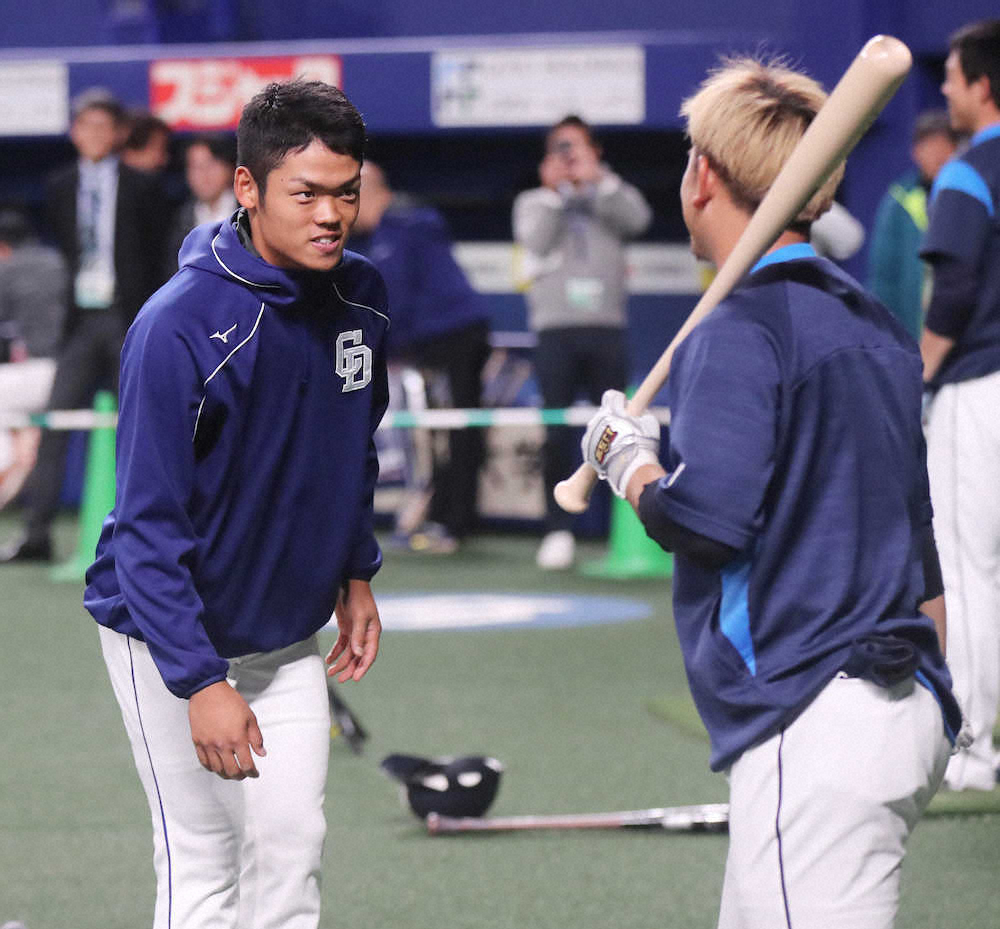 <中・西>試合前、与田監督(右)から声をかけられる根尾=左(撮影・椎名 航) Photo by スポニチ 根尾 待望初安打、OP戦2打席目「2番・遊撃」初スタメン即結果 ギャラリーで見る この記事のフォト 2019年03月15日の画像一覧 もっと見る 2019年03月15日の画像をもっと見る