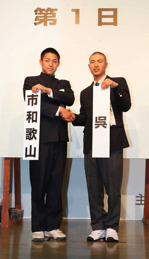 第91回選抜高校野球大会(23日開幕、甲子園)の組み合わせ抽選会が15日、大阪市北区の毎日新聞大阪本社オーバルホールで行われた。3年ぶり6度目出場の市和歌山は開幕試合で呉(広島)と戦うことが決まった。