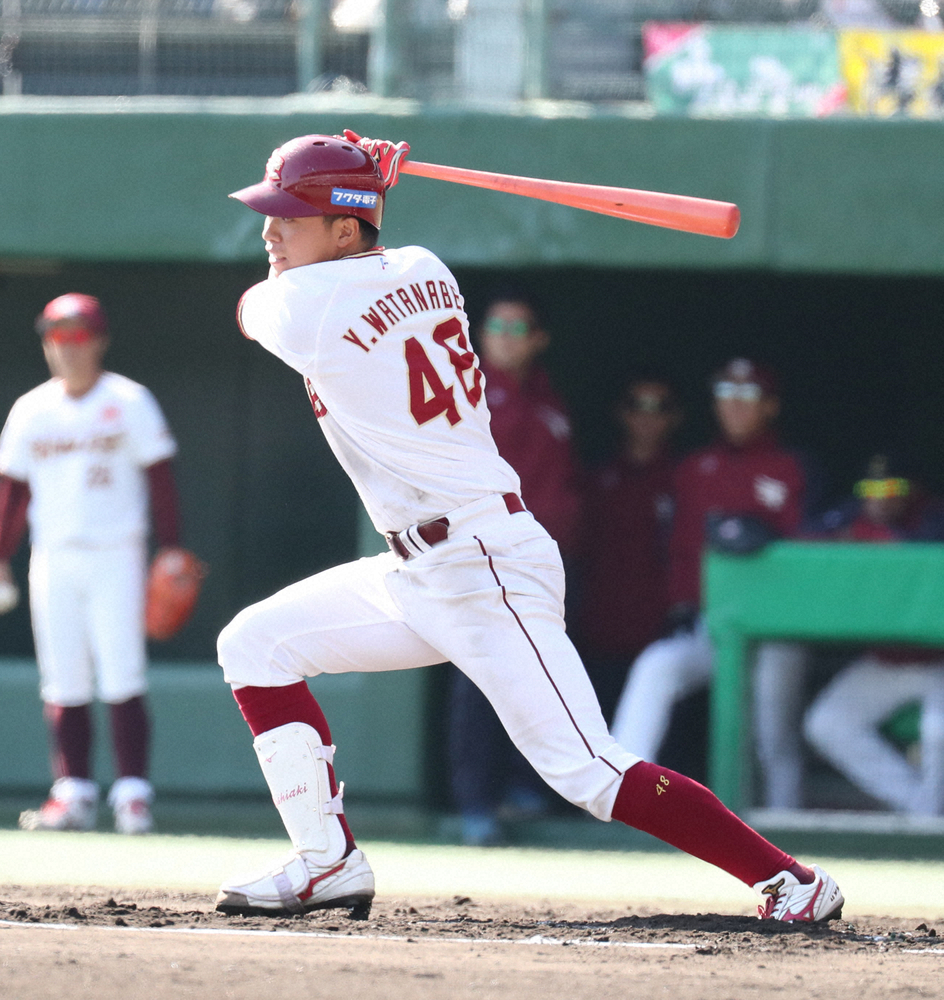横浜高を率いた渡辺元智前監督の孫はオープン戦では打率・333。平石監督は「内野が駄目なのではなくアイツの能力を引き出すため。試合に出るチャンスが増える」と説明した。