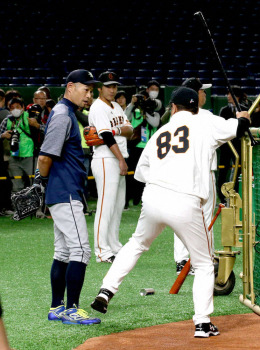 試合前、鹿取氏(左)と抱き合うイチローに手荒い?あいさつをする中畑氏(右) Photo by スポニチ 【中畑清 視点】練習から感じたイチの「覚悟」 もしかしたら、野球人生… ギャラリーで見る この記事のフォト 2019年03月18日の画像一覧 もっと見る 2019年03月18日の画像をもっと見る