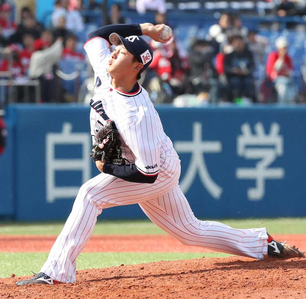 先頭・田中、菊池を2者連続三振に斬った。主力を封じると、続くベテランの途中出場の小窪も中飛に抑えた。最速は151キロ。「追加点を与えたくなかったので先頭打者を切れたことが一番。7回を投げたい。争いに勝っていきたい」と言葉に力を込めていた。