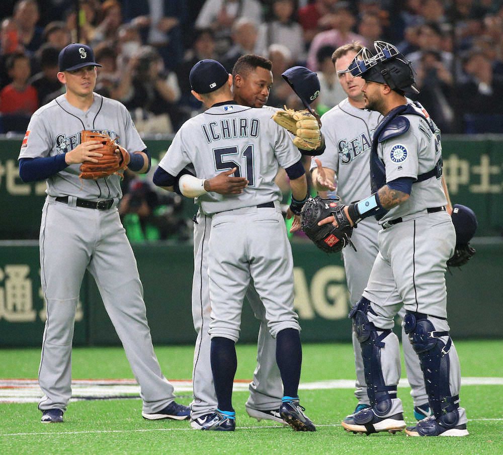 <アスレチックス・マリナーズ1>試合前、フォトセッションを行う菊池(後列中央)(前列左から2人目はイチロー)(撮影・吉田 剛) Photo by スポニチ イチロー 開幕スタメン出場も無安打 交代時にナインと抱擁 ギャラリーで見る この記事のフォト 2019年03月20日の画像一覧 もっと見る 2019年03月20日の画像をもっと見る