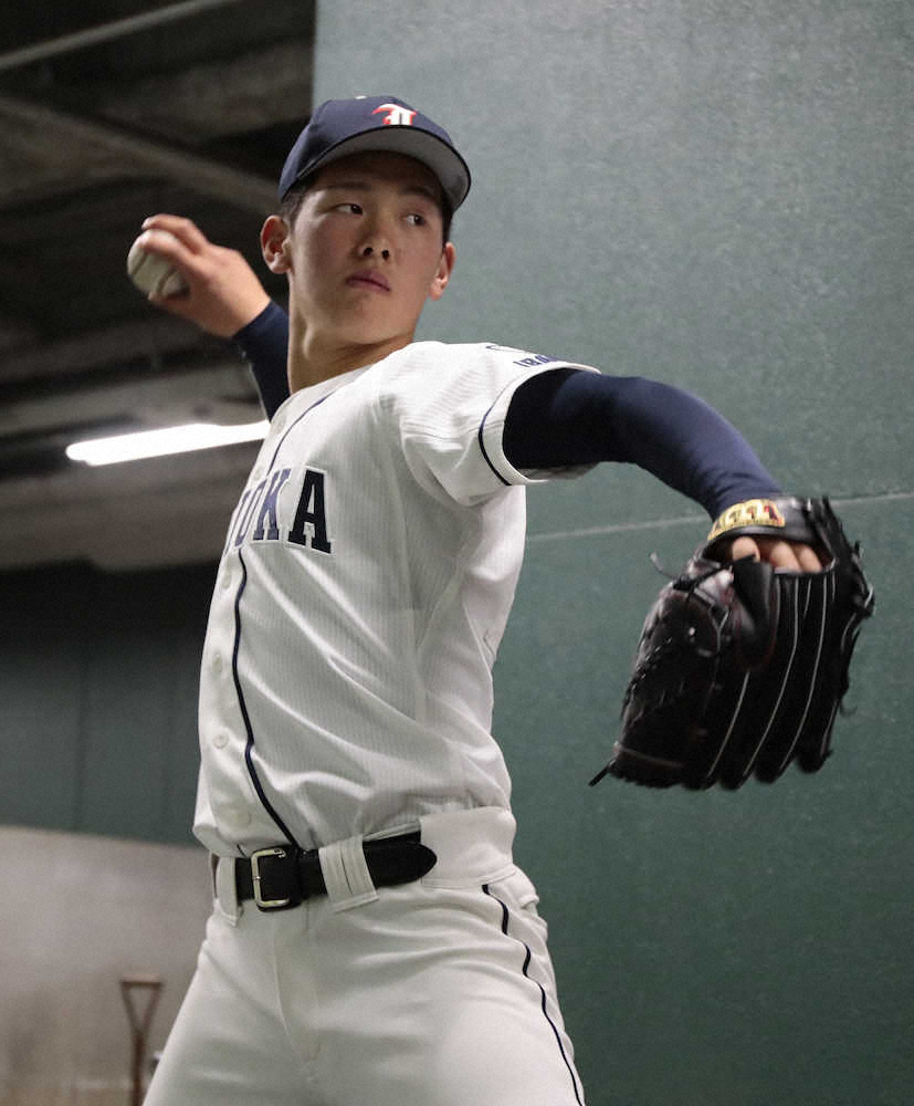 室内で行った約20球の投球練習でも自然と力が入った。農学校をルーツとする石岡一を最速147キロの直球で甲子園に導き「輝星2世」と呼ばれる。吉田輝のフォームを動画などでまねするうち「下半身主導で投げられるようになってきて、球の伸びが良くなってきた」という。今大会の目標は「150キロ出せれば」。大台到達で、吉田輝の甲子園最速に並ぶ。 (武田 勇美)