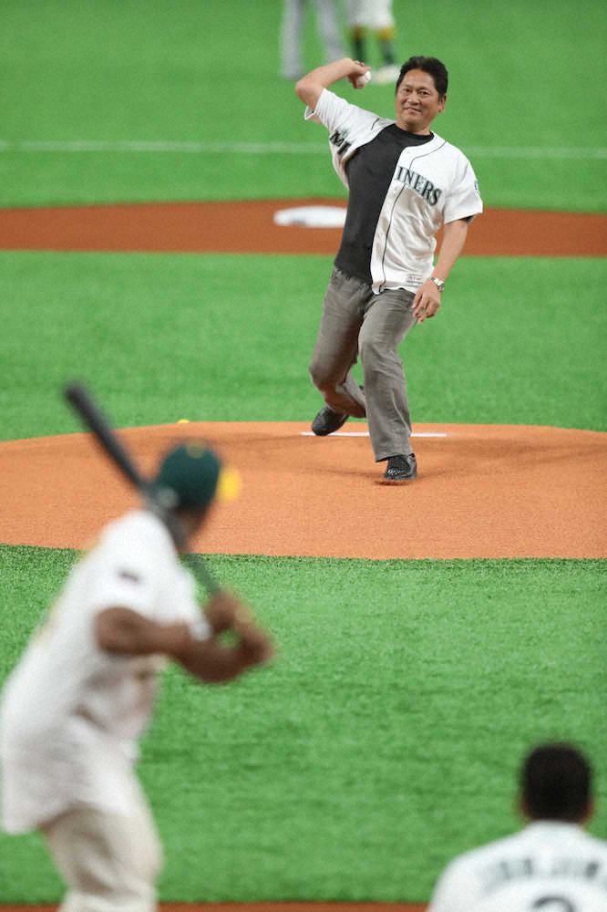 「練習していなかったのでどうなるかと思ったけど、良かった。メジャーが日本で見られるのはいいこと。パワーとスピードを見てほしい」と佐々木氏。城島氏は「ど真ん中に来た。シアトルは僕のメジャー挑戦を受け入れてくれたチーム。良い思い出ばかりだし、そういうチームからこうして声を掛けてもらって始球式ができたことは、野球人としてとてもうれしい」と話した。