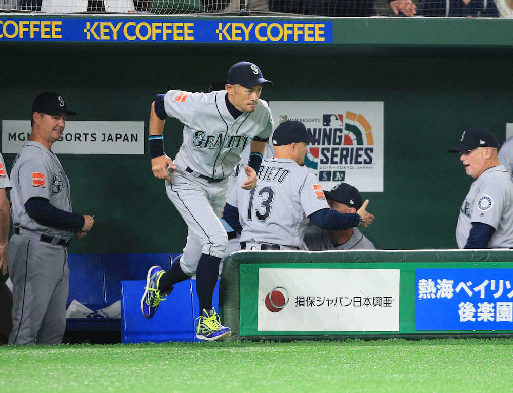 イチローは前日の開幕戦も同じく9番・右翼で出場。二飛、四球の2打席で交代し、4回裏の守備の際は一度右翼の守備に就いてからベンチに戻った。ベンチ前ではナイン一人一人と抱き合い、敵軍アスレチックスのナインも全員が立ち上がって拍手を送った。大リーグ公式戦でのプレーは昨年5月2日(日本時間3日)以来で、チームは9―7で勝利。スコット・サービス監督(51)は21日の第2戦もイチローを起用することを明言していた。