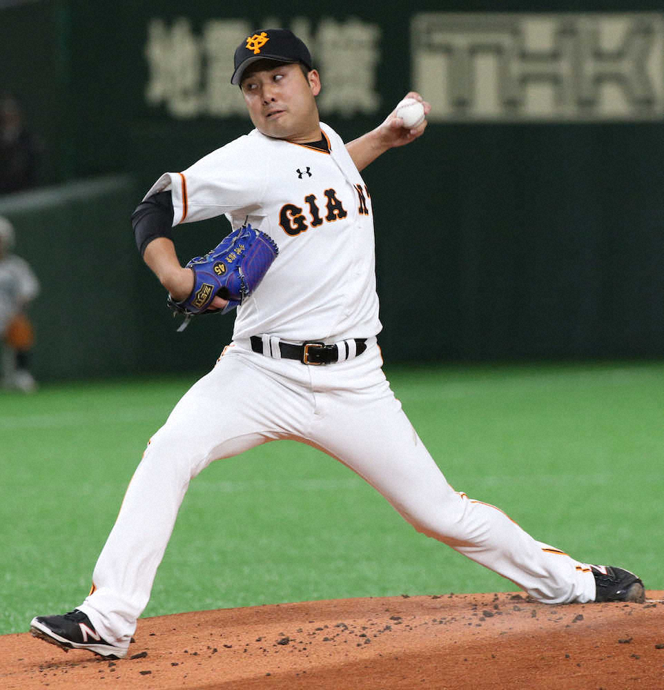 <巨・ロ>力投する先発の今村(撮影・森沢裕)