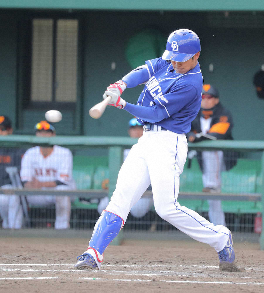 ファーム交流戦の巨人―中日戦(ジャイアンツ)は延長11回、4―4で引き分け。巨人先発・田口は6回5安打3失点(自責2)。重信が3回に1号ソロ、和田が8回に同点の1号ソロを放った。中日先発・浜田智は4回2/3を4安打3失点(自責2)。「2番・遊撃」でフル出場したドラフト1位・根尾は6打数1安打だった。