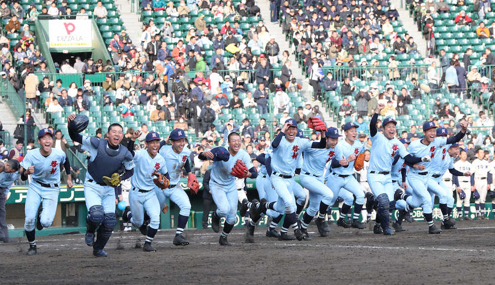継承と改革で勝利をつかんだ。植松監督は5年間の野球部長を経て昨年4月に就任。相洋(神奈川)時代に教えを受けた大八木治前監督(65)の「考えて動く」野球を発展させた。選手を信頼し、自主練習の割合を増加。レギュラーと控えの壁を取り払い、全員が同じ練習をすることで競争意識を高めた。2月には全員で1分間の大縄跳びに挑戦。引っかかったらやり直しで、失敗した時は歌を歌いながら跳んだ。2時間半かけて達成した時はGReeeeNの「キセキ」で締めた。縄を回す役を務めた穴水は「最後は一体感がすごかった。やり切った感じがして気持ちよかった」と話し、穴水から回す役のパートナーに指名された鈴木は「成功したときは、みんなでガッツポーズをして大盛り上がりだった。自分たちのあきらめない野球は、あの練習が原点だったと思う」。指揮官の狙い通りに結束は強まった。