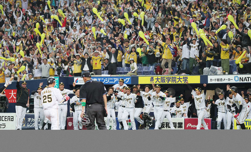 阪神は延長11回、ヤクルト・石山の暴投で三塁走者がホームイン。サヨナラ勝ちで開幕戦を制した。