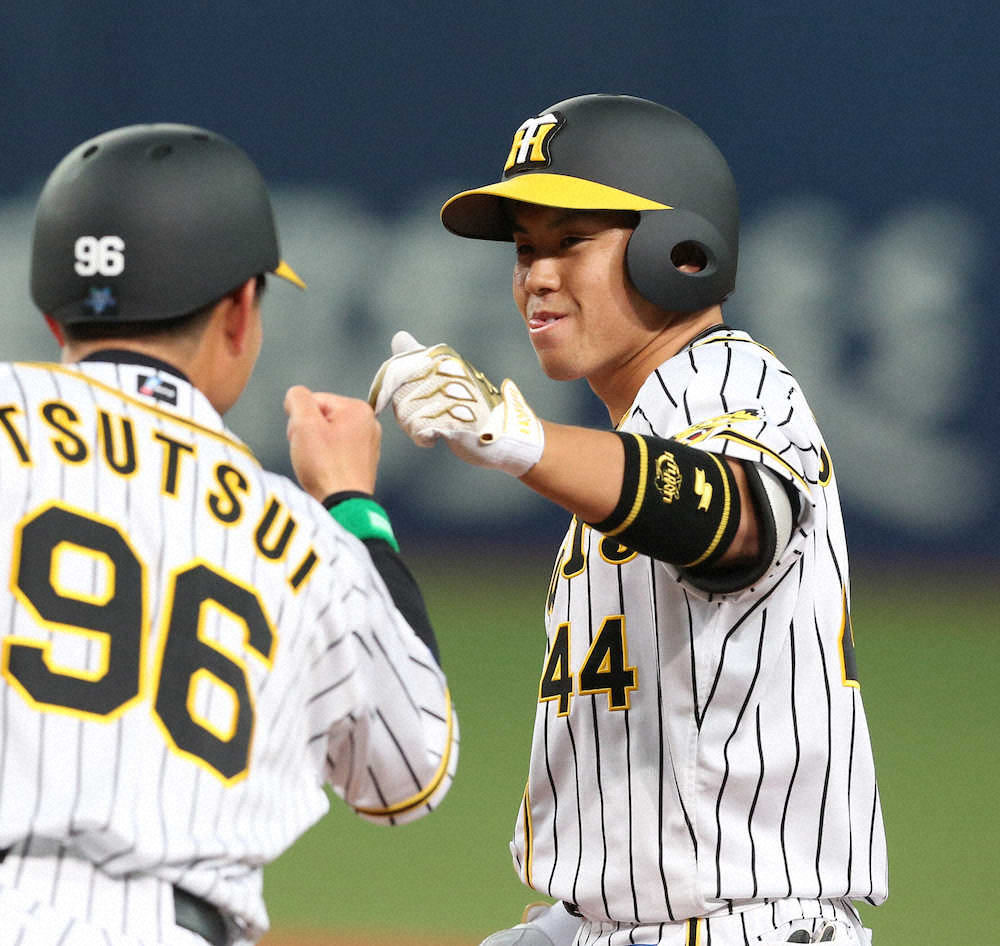 まずは初回、無死一、二塁から山田哲の放った中前打を処理した近本のショートバンドの本塁返球をキャッチして補殺をアシスト。「ボールが無回転で簡単ではなかった」と振り返った価値ある“好捕”で先発のメッセンジャーを救った。