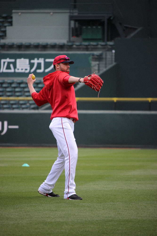 キャッチボールする広島・ジョンソン