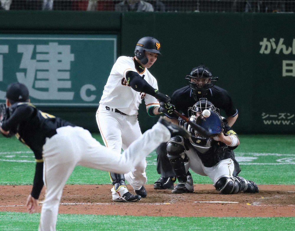 初回無死一、二塁から一塁線を破る先制の適時二塁打。「後ろにいいバッターが控えているので。特に、岡本さんにつなげば何とかなると思っていた。その気持ちがいい方向に出た」と振り返った。