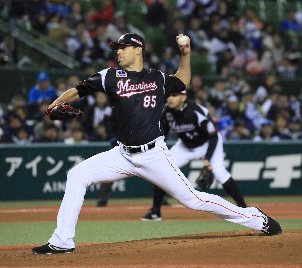 ロッテの新外国人ブランドンが今季初先発。日本球界でのマウンドはDeNA時代の12年10月6日の巨人戦以来2370日ぶりだったが、2回7安打5失点でKOされた。